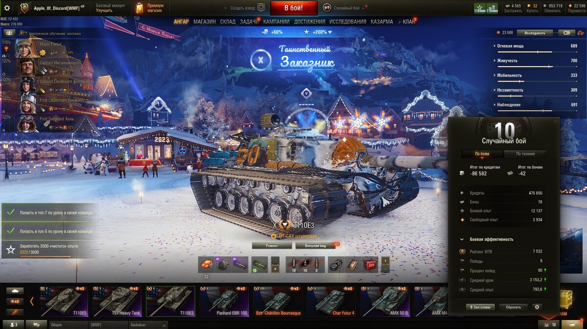 Всем привет! Сыграл вчера очередную ночную сессию. Бои были вполне адекватные. Из 10 боёв только 1 бой был сливным. Можно списать это на спокойствие рандома, подкрутку после открутки, или же на банальную игру взводом. Но факт остаётся фактом, т110е3 теперь куда лучше поддаётся моим навыкам игры. Если в начале я ещё мог ошибиться, посчитать что я через чур имба, понадеяться на броню в нлд даже, то сейчас я действую аккуратно. Даже наличие бронированного лючка не даёт тебе полной защищенности. Например фош 155 вчера мне это доказал. Стоило мне только выкатиться в агрессию, так сразу был продырявлен лючок на башке. Ну и конечно же нлд, оно хоть и имеет стык, умные ребятки будут туда пробивать без проблем. Самое важно что стоит понять, это игра от позиции. Если играть от позиции, прятать нлд, знать на какой карте куда ехать - ваш винрейт и дамаг будет выше. Но есть карты где е3 слаб. Например Утёс, в случае слива горки, вы будете пострадывать. За маяк не поехать, так как лт с горы вас унич