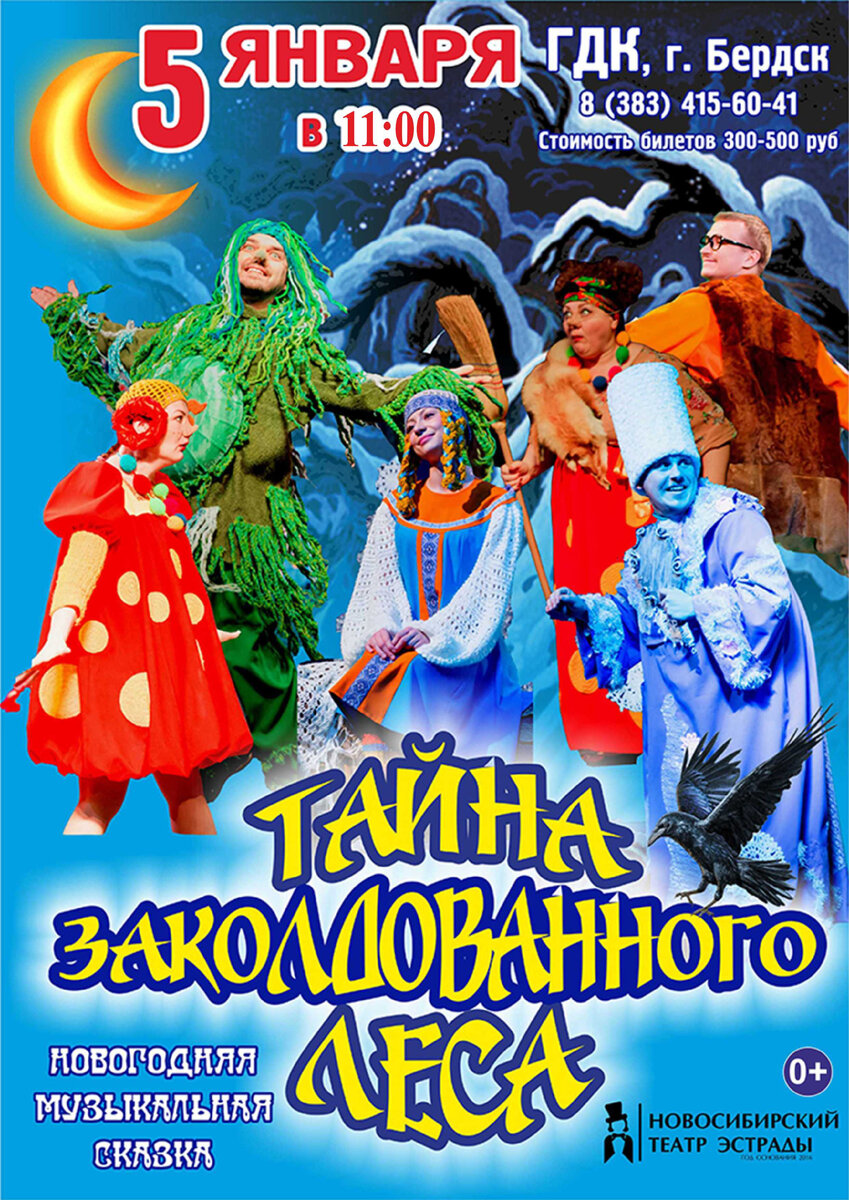 В четверг, 5 января, в 13:00 часов в большом зале ГДК состоится Новогоднюю музыкальную сказку «Тайна заколдованного леса» Новосибирского театра эстрады.