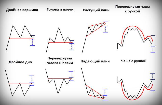 В каждый из этих видов входит до 10 и более паттернов технического анализа. Запомнить, а тем более научиться находить все из них, невозможно. Поэтому большинство трейдеров выбирает набор из 5-7 фигур и работает только с ними.