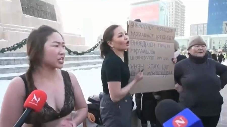 Массовое раздевание в знак протеста прежде неоднократно практиковали мужчины, но 21 декабря к ним подключились около 30 девушек. В 20-градусный мороз они вышли на площадь Сухэ-Батора в легкой одежде, а одна из женщин разделась до нижнего белья.
