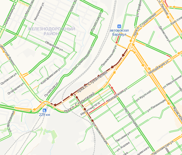 Согласно информации сервиса «Яндекс.Пробки», затор собрался в сторону Павловского тракта, а также на улице Челюскинцев.