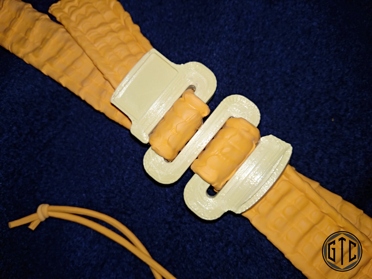 Сегодня мы поговорим в контексте последних: о специальном приспособлении, помогающем ускорить и упростить их использование. Если конкретнее: жгута "Альфа" (жгута Бубнова), которым комплектуются штатные медицинские подсумки ВС РФ. Этот жгут позиционируется как более прогрессивный, чем привычный "Эсмарх", но не лишён недостатков: малой длины (особенно критично в тёплой одежде) и ненадёжного фиксатора, выполненного в виде резиновой петли. Для решения этих проблем был разработан специальный фиксатор (он же "замыкатель"), который представляет собой открытую четырёхщелевую металлическую пряжку. Среди её недостатков можно было бы выделить острые края без фаски, которые травмируют резину жгута. Но главный её недостаток - отсутствие в стандартном комплекте поставки жгута "Альфа". То есть вместе со штатной аптечкой вы получаете жгут, который мог бы быть намного луч