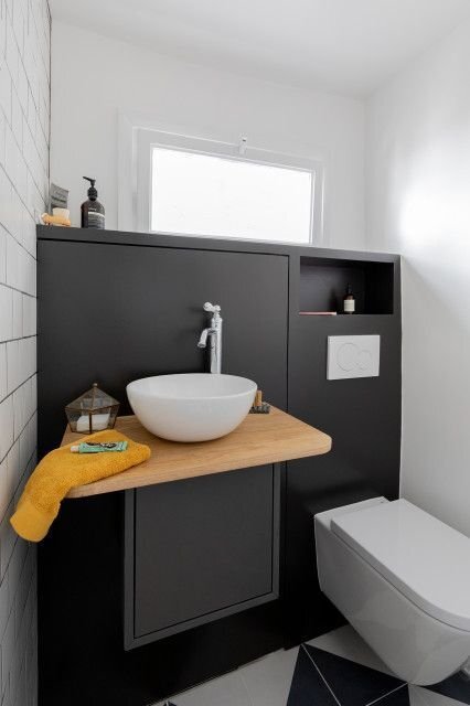 Санузел находится в небольшом домашнем офисе на месте старой кладовой. Помещение, в которой расположится санузел всего полтора квадрата, поэтому придётся постараться над его планированием. Необходимо уместить удобный туалет и заказчик пожелал увидеть в этом санузле ещё и душевую. Задача не из лёгких, поэтому пришлось хорошо подумать. В процессе проектирования помещения наткнулись в интернете на интересное решение: складная душевая. Решили реализовать такое решение в проекте. До ремонта санузел был грязный, уже изрядно поношенный и казался ещё более узким из-за выбора интерьера. Зеркало стояло на раковине, одно неверное движение и оно бы просто разбилось. Всю старую сантехнику демонтировали, заменили все инженерные коммуникации, установили фильтры, теперь вода будет чище. После ремонта санузел стал более просторным. Так получилось благодаря выбору цветов для интерьера. Кроме того, удалось реализовать раздвижной душ, который не виден с первого взгляда. Это очень хорошо экономит пространс