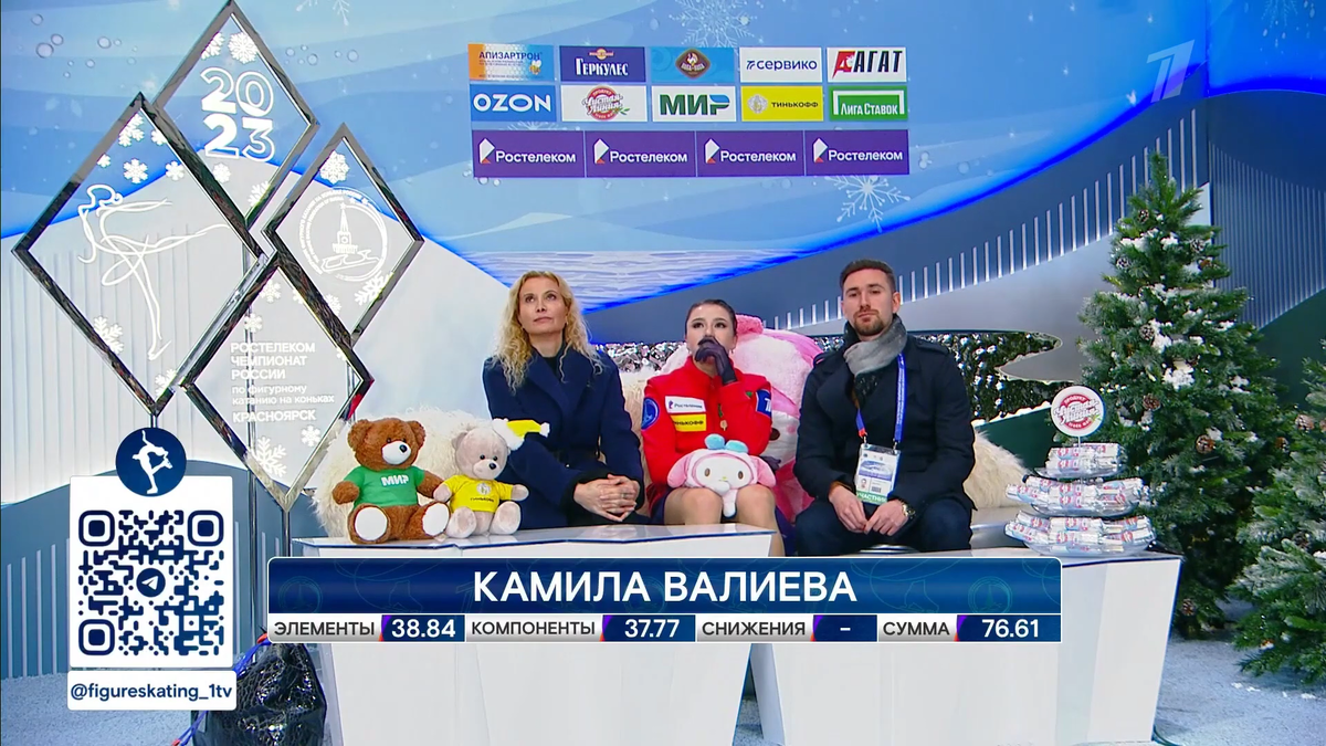 Здравствуйте, мои дорогие друзья! Вот и пришел чемпионат России в Красноярске. До того, как девушки вышли на лед, свои золотые медали завоевали танцоры Елизавета Худайбердиева - Егор Базин и одиночник Евгений Семененко. Работу судей обсуждать не будем, поэтому просто поздравим чемпионов! У девушек, как всегда, турнир обещал быть очень интересным, журналисты и болельщики терялись в прогнозах. К сожалению, с чемпионата снялась серебряный призер Олимпийских игр Александра Трусова - по медицинским показаниям. Желаем Саше скорейшего выздоровления и очень ждем на льду. Уже в первой разминке короткой программы произошли важнейшие события. Во-первых, действующая чемпионка России и Европы Камила Валиева, которая недавно победила на прыжковом турнире, ошиблась - сделала бабочку вместо акселя (думаю, что планировала тройной). Сегодня у Камилы 76.61, и она далеко от лидера. А вот еще одна ученица Тутберидзе Софья Акатьева была идеальна! Прекраснейшая короткая программа с чистейшим тройным акселем.