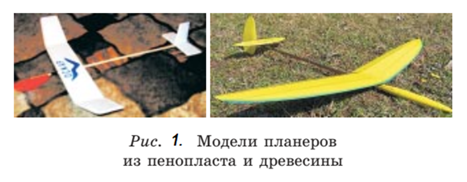 Модели планеров из пенопласта и древесины представляют собой дальнейшее развитие моделей планеров из бумаги. Они имеют обтекаемые формы основных деталей и не требуют много времени на изготовление (рис. 1).