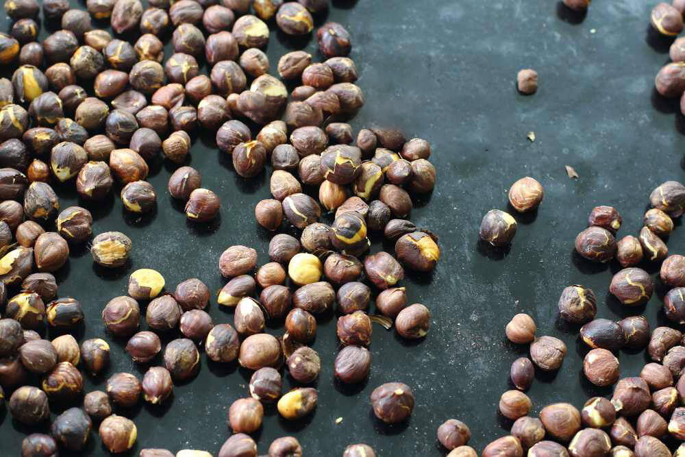 Ингредиенты для него нужны самые простые: Орехи могут быть любые, я использовал чистую фундучную пасту, поэтому рассказываю о ней. Орехи необходимо обжарить на сухой сковороде и очистить от отваливающейся шелухи. Снять с огня и дать остыть. Сахар растапливаем на среднем или маленьком огне, покачивая сковородку и постоянно подсыпаем сахар на места где он уже расплавился. Как только весь Сахар расплавлен, всыпаем все орехи и перемешиваем лопаткой, чтобы равномерно покрыть их карамелью. Займёт это 10-15 секунд и перекладываем на силиконовый коврик или сиконезирлванную пергаментную бумагу. Даем массе остыть 1-5 минут Раскалываем получившиеся козинаки на кусочки и кладём в