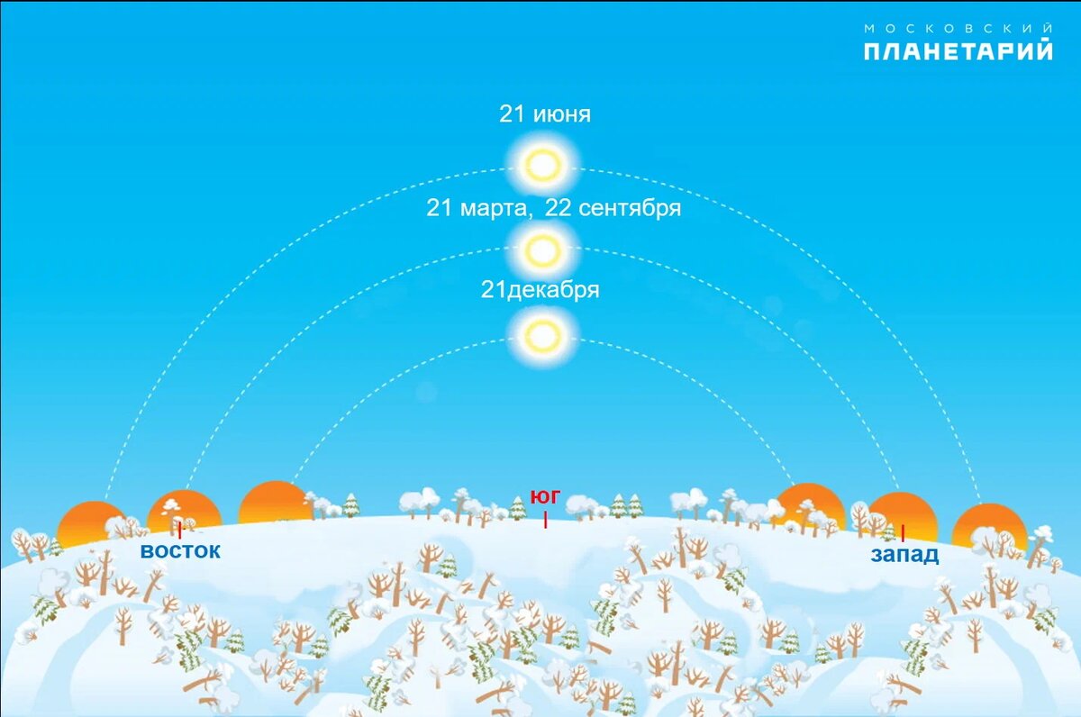 Уточню - равноденствие было вчера, 22 декабря, практически в полночь по московскому времени (00.48). Это очень радостный, праздничный день солнцеворота, после которого световой день начнет увеличиваться, а Солнце подниматься всё выше надо горизонтом. Здесь указана высота Солнца над горизонтом в полдень в Москве в день зимнего солнцестояния (21 декабря), летнего и осеннего равноденствия (21 марта и 22 сентября) и летнего солнцестояния (21 июня). 21 декабря и 21 июня называют днями солнцестояния, потому что высота Солнца над горизонтом за неделю до этих дат и неделю после практически не меняется и, соответственно, длина светового дня в эти дни тоже почти постоянна. А вот в дни осеннего и весеннего равноденствия эти параметры меняются очень быстро. В астрологии эти четыре даты солнцестояний и равноденствий считаются очень важными, потому что после них наступает месяц кардинальных перемен. В этом году равноденствие практически совпало с новолунием, которое произойдет примерно в 14 часов п