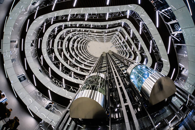 Остекление должно было учитывать конструктив здания: фасад имеет сложную сферическую форму и расположен под отрицательным углом.