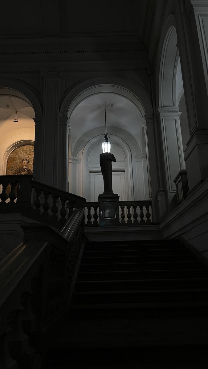 Музей задумывался как учебное пособие для студентов: каждый зал оформлен в отдельном стиле. Чтобы в него попасть, нужно записаться на сайте. Но все не так просто. Нужна еще и немаленькая группа. Однако, я смогла "взглянуть одним глазком" после лекции, которую посетила. Правда, не на все залы, тем не менее. Училище было основано в 1876 году на средства Александра Людвиговича Штиглица (1814-1884) — очень богатого человека, крупного промышленника, банкира и мецената. Красивое здание в стиле историзма построенного талантливым зодчим и первым директором Училища Максимилианом Месмахером. Создано по образцу аналогичных учебных заведений в Европе, а также на основе опыта московского Строгановского училища. На фото ниже невероятно красивая Римская лестница. Поскольку осмотр музея исторически происходил в дневные часы, архитектор позаботился о попадании естественного света. Главный выставочный зал освещается через двойной стеклянный купол. На второй этаж ведёт мощная двухмаршевая лестница. В 40-
