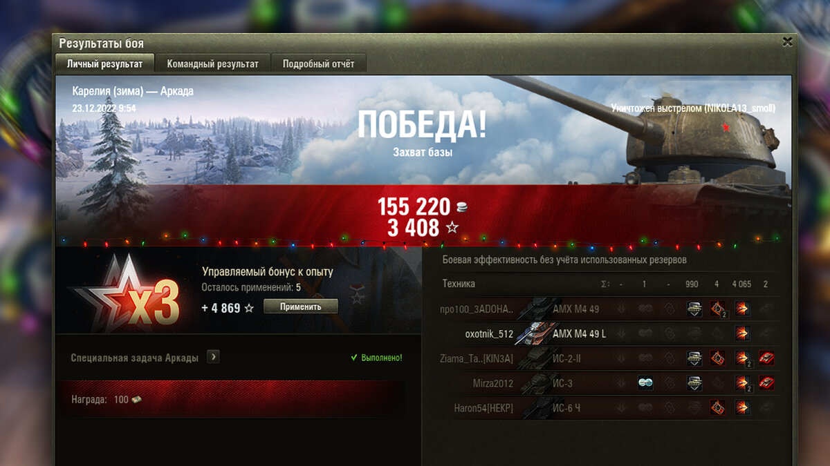 Многие игроки не поняли прикола нового режима, с которым ты просто превращаешься в читера. Мне пару раз прилетало разгневанное сообщение после боя. Но это не я читер, а они не вкупили секрета, который позволяет халявно настреливать тысячи урона и вывозить тонны серебра за бой: Режим получился настоящим подарком на Новый Год, который позволит разбогатеть в игре на десятки миллионов, если знать, как в нем правильно играть! Три маленьких секрета. Начнем с базового, может кто не читал особенности. Во-первых, заряжаем побольше фугасов, потому что у них повышенное пробитие, когда у всех остальных пониженное! Во-вторых, здесь действуют резервы, взводный бонус и новогодний. Так что подрубайте всё, что только возможно! Бои очень быстрые и поэтому серебра здесь получится вывозить побольше, чем на Линии Фронта. В-третьих, садясь за легкий танк, вы берете на себя большую ответственность, потому что от него зависит 80% исхода боя. И сейчас поймете почему... Самый главный секрет! Вам нужно забыть пр