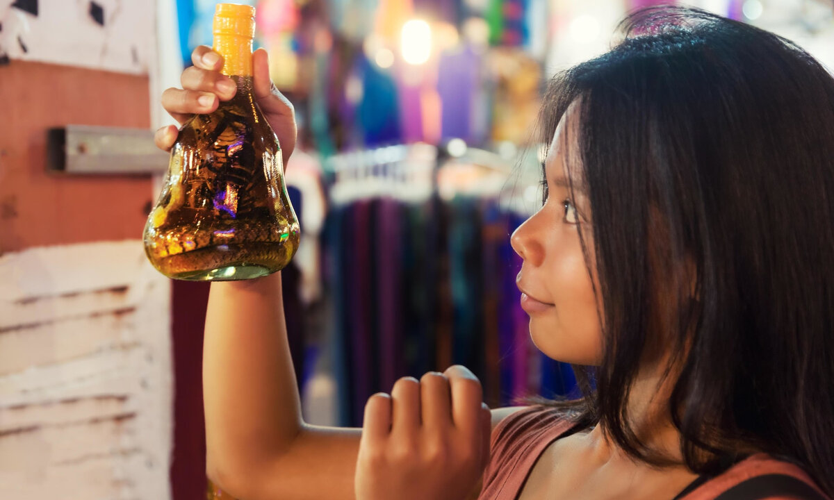 Начнем с лайт-версии, которую иногда привозят в подарок из других стран в качестве экзотики. Суть в том, что спиртом надо залить живую (!) змею, чтобы она отдала напитку энергию ци.