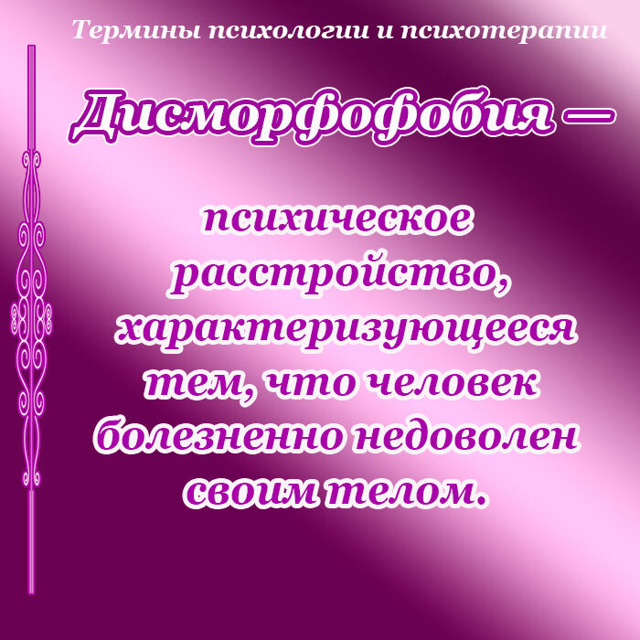 Дисморфофобия – это психическое расстройство, характеризующееся тем, человек болезненно недоволен своим телом. Неприятие своего тела становится при этом причиной тяжелых психологических переживаний. Чаще всего данное заболевание возникает в детстве или юношеском возрасте. Так, часто подростки могут быть недовольны своей фигурой, лицом, кожей, весом и т.д.