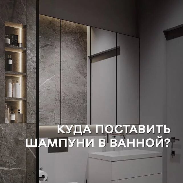 Когда дизайнер разрабатывает проект, важно не только создать красивые визуализации, но и продумать каждую мелочь. Всегда неприятно разочаровываться. Если в дизайн-проекте Вы увидите квартиру мечты, а в жизни будет все не так, то разочарований не избежать. Сегодня мы расскажем о такой фишечке как скрытые ниши под шампуни. В ванной комнате Вы пользуетесь шампунями, гелями и другими баночками, которые должны где-то стоять. Если заранее это не продумать, то они будут на бортике ванны, на полу душевой кабины или на столешнице у раковины. И ваш идеальный интерьер будет уже не таким красивым. Именно поэтому при разработке дизайн-проекта мы предлагаем делать скрытую нишу под шампуни в ванной. Ей удобно пользоваться, все баночки стоят на своих местах и не привлекают внимание. А где у вас стоят шампуни и гели в ванной?