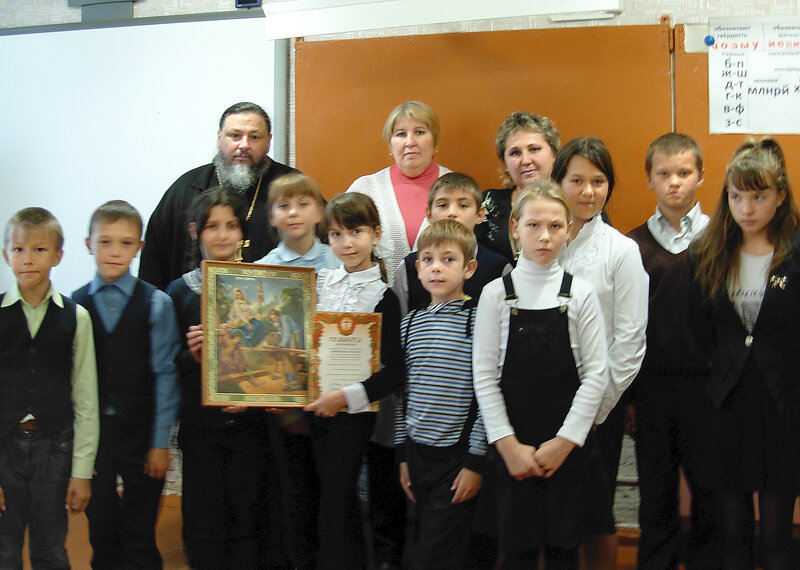 В декабре в МБОУ ООШ села Двуречки и МБОУ ООШ села Верхний Телелюй были проведены Недели православной культуры, в дни которых школьников и педагогов окормляли настоятели местных храмов. Неделя православной культуры в школе села Двуречки была посвящена теме «Русское монашество и культурное наследие России». Ее открыла традиционная общешкольная линейка, в ходе которой дети познакомились с планом мероприятий и узнали о целях и задачах их проведения. С приветственным словом к ученикам школы обратился настоятель Никольского храма села Двуречки протоиерей Виктор Долгов. Священник совершил чин молебного пения и окропил святой водой собравшихся. В течение Недели в образовательном учреждении проходила выставка книг на православную тематику «Дорога к храму» и выставка рисунков детей «Красота Божьего мира». Для 5-классников был проведен классный час «По святым местам Задонска: Задонские обители», а для учащихся 9 класса – «Монастыри России». Два взаимодополняющих мероприятия прошли для ребят 5-7