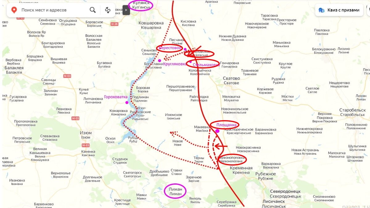 Читая сегодняшнюю утреннюю сводку проекта «Варгонзо» и накладывая на карту своих «предположений» (двухнедельной давности (https://t.me/yurasumy/6424)) названия упомянутых там населенных пунктов (их названия взял в красные овалы), я невольно улыбаюсь:
