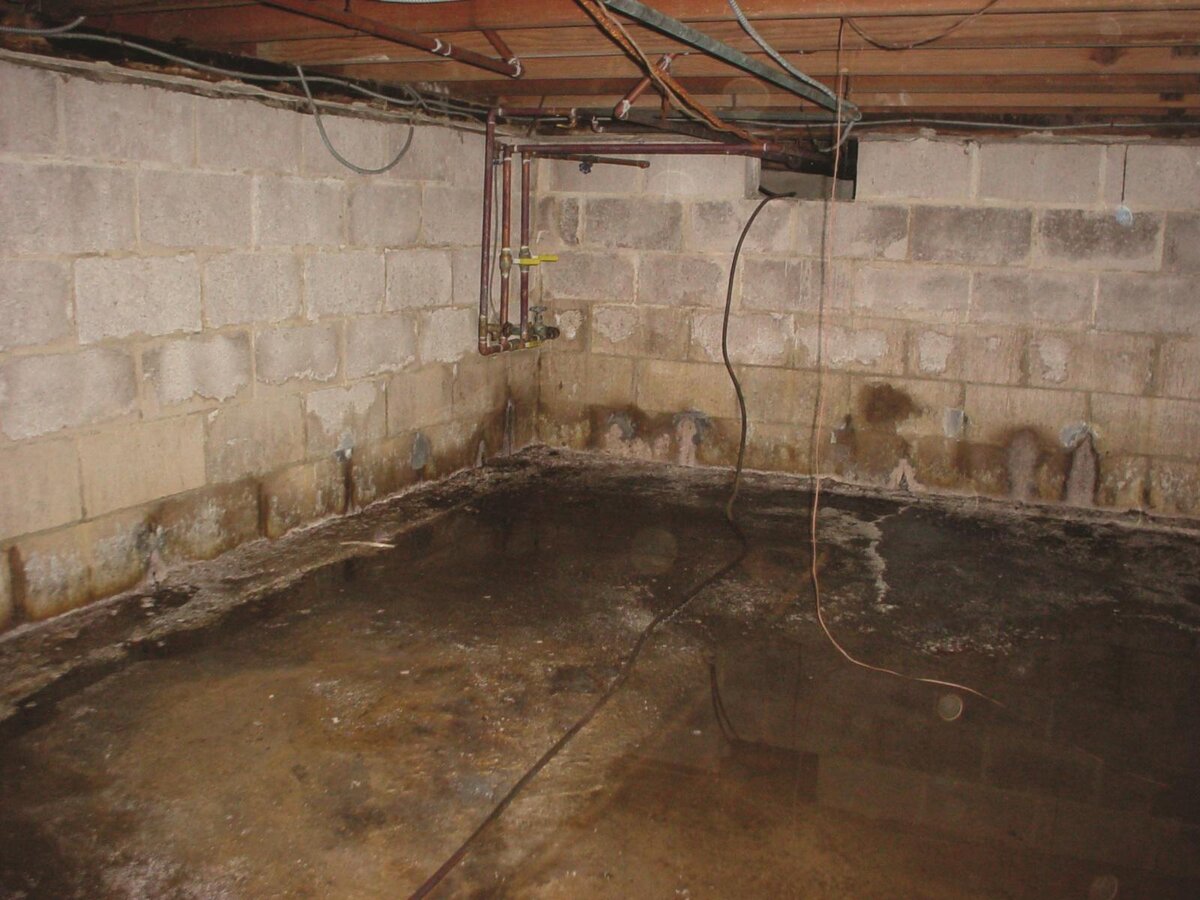 - На полу заметны большие и маленькие лужи - подвал топит грунтовыми водами.