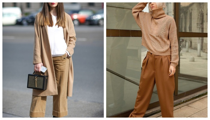 Ниже вашему вниманию представлены ультрамодные и эффектные образы, на примере которых можно увидеть с какими вещами, обувью и аксессуарами лучше всего комбинировать брюки в цвете беж.