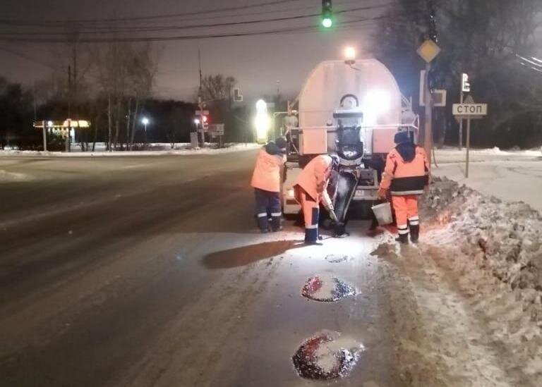 В Рязани продолжаются работы по ремонту аварийных ям литой асфальтобетонной смесью