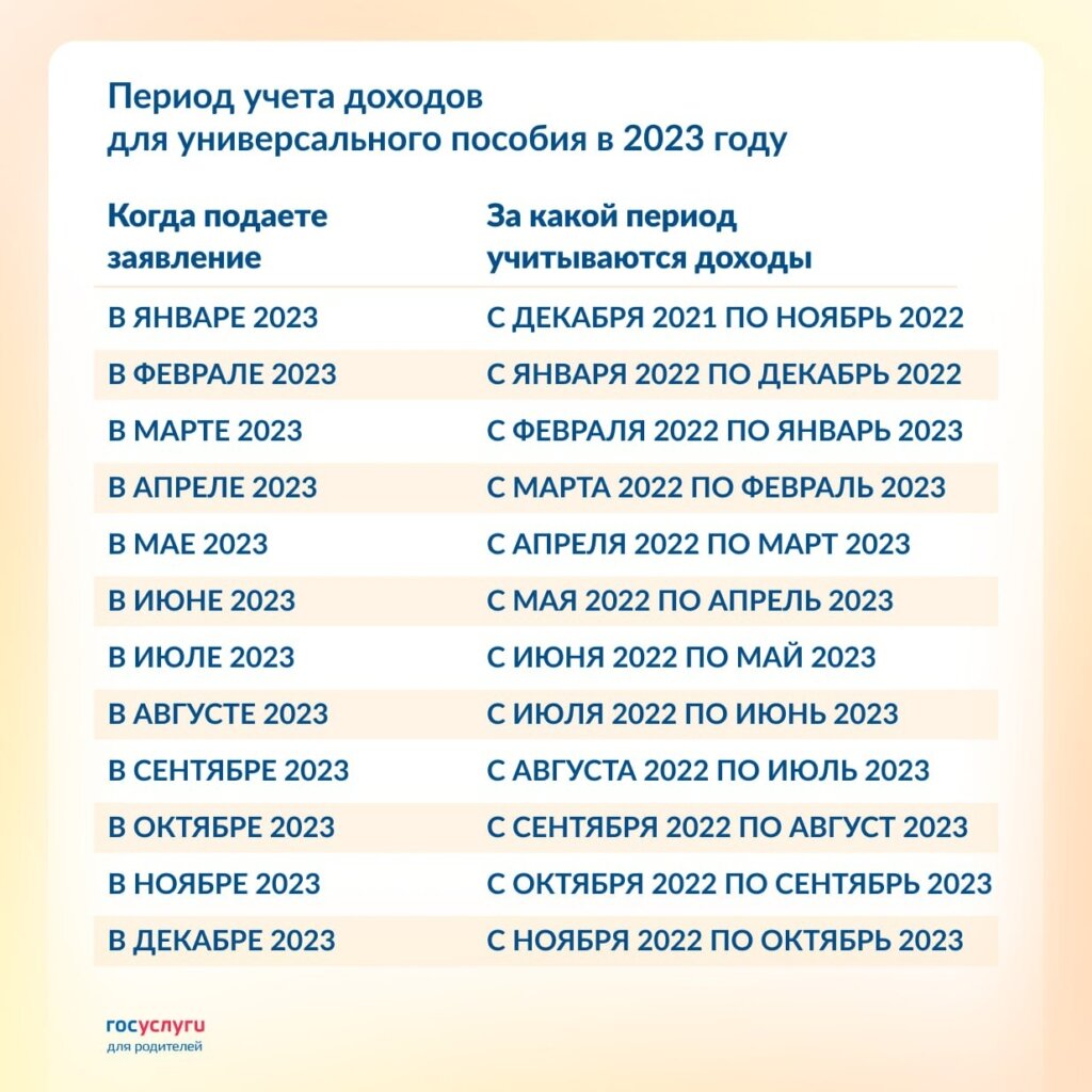 При подаче заявления в январе 2023 года учитываются доходы за период с декабря 2021 по ноябрь 2022.