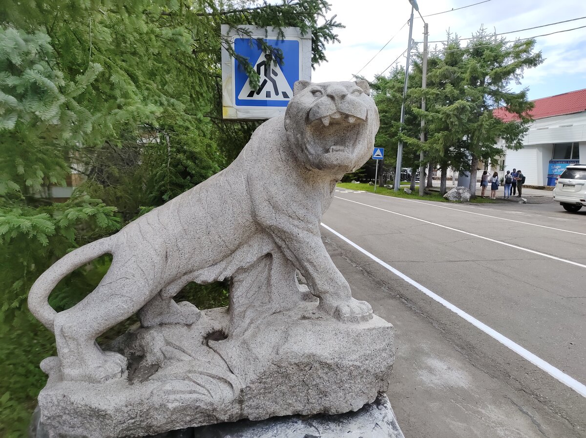 За которыми вдалеке виднеется памятник оленям-изюбрам (1965), один из символов посёлка, ближе к которому мы, к сожалению, подойти уже не успевали. Хотя что эта скульптура, что заложенный в нее смысл очень важны для кульдурской самоидентичности. По преданию, именно охотясь за раненным оленем, местный охотник (прототип которого, вероятно, был нанайцем) наткнулся на горячий целебный источник, в котором исцелялась вся местная живность - от волков до медведей. Охотник якобы только и успел, что констатировать: "Хуль-Джи-Ури...", что в переводе с нанайского/гольдского означает "горячий источник". Шли годы, и немного странновато звучающее "Хуль-Джи-Ури" русифицировалось и стало "Кульдуром".