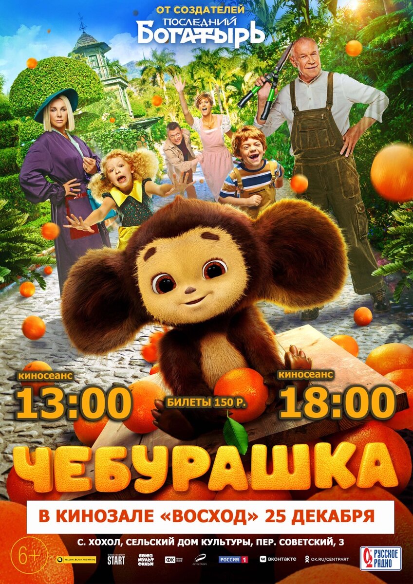 25 декабря в селе Хохол на базе сельского Дома культуры им. В.С. Панина состоится открытие нового киноконцертного зала «Восход». Первым сеансом станет главный семейный блокбастер Нового года - художественный фильм «Чебурашка».