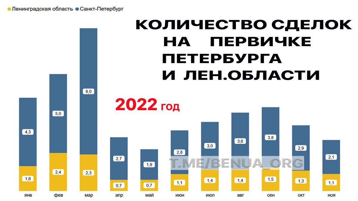Количество продаж является лакмусовой бумажкой состояния рынка новостроек, чтобы на ни говорили застройщики. Хотя точные данные Росреестра за декабрь 2022 года будут известны только после новогодних праздников основываясь на данных за 11 месяцев 2022 года можно точно сказать, что количество сделок на первичном рынке Москвы и Петербурга точно меньше, чем за тот же период 2021 года. В Петербурге в 2022 году с января по ноябрь включительно было зарегистрировано 57785 ДДУ, в 2021 их было на 19,4% больше - 68997 В Москве за 11 месяцев 2022 года зарегистрировано ДДУ 76101 штук, в 2021 на 14,3% больше - 88016. Ипотечные ставки по основным льготным программам с господдержкой в 2022 году в сравнении с 2021 годом не изменились, однако, после событий в феврале 2022 года банки и застройщики были вынуждены искать пути возврата покупателей на первичный рынок в результате чего появился целый пласт суррогатных предложений под названием "субсидированная ипотека" от 0,01% до 1%, а так же "Траншевая ип