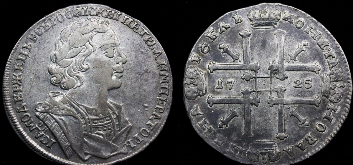 Всем, привет! Меня зовут Лев. Я являюсь нумизматом. Сегодня хочу обсудить еще одну очень интересную монету. Рубль 1725 года. Описание монеты Монета образца 1725 года с портретом петербургского типа (голова влево). Выпускалась в 1725-1726 годах. По окружности лицевой и оборотной сторон имеется выступающий шнуровидный кант (на некоторых экземплярах может частично отсутствовать). На аверсе помещён портрет Екатерины I в профиль, лицом влево. По кругу надпись (начиная сверху) - "ЕКАТЕРIНА• IМПЕРАТРIЦА• IСАМОДЕРЖИЦА• ВСЕРОСIСКАЯ".
