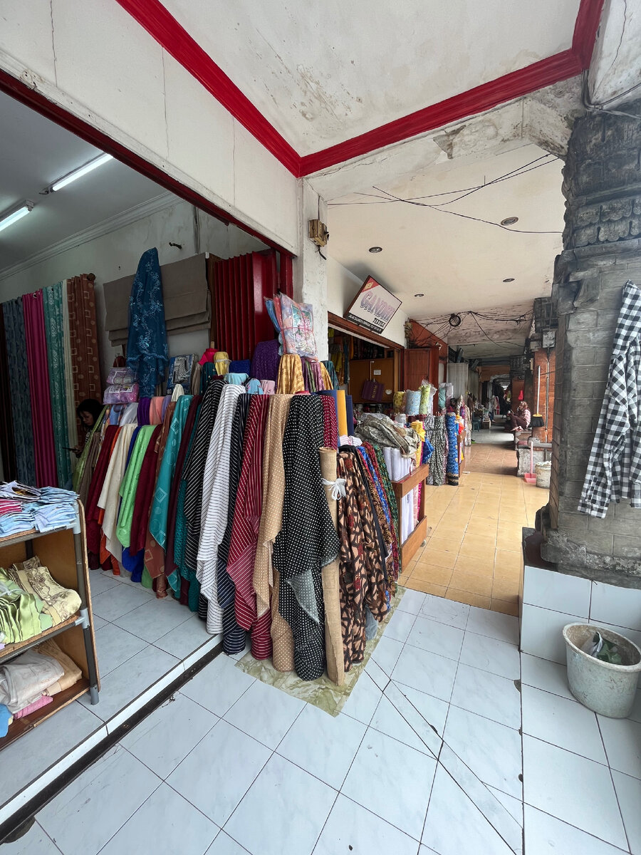 В городе Денпасар есть целая улица с магазинами тканей. Нам нужно было найти ткани для коллекции подруги. И повезло, что с нами был друг, у которого в России свой магазин. Объездив пять магазинов и огромный рынок удалось найти только часть необходимого. В основном конечно здесь продается то, что местные используют для сари или саронгов (национальная индонезийская одежда-наподобие длинной юбки или платья). Большой выбор хлопка, сатина, различных фатиновых сеток с кружевом, да и самого кружева продается очень много. Только вот это все из очень старых коллекций и завозится из Китая. Если вдруг захочется заказать оптом в Россию, то выгоднее конечно это делать напрямую через китайских поставщиков, цена будет ниже, да и доставят быстрее. С Бали ваш заказ поедет морем в огромном контейнере и как переживет ткань такую поездку никто не знает и гарантий никаких дать не может😬 Есть магазины и более современного варианта, но там уже ценник кусачий. В целом за один ярд ткани (а тут ее прода