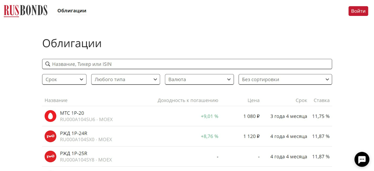 Уважаемые пользователи! Рады сообщить Вам о запуске магазина облигаций на портале RusBonds. Теперь с помощью кнопок «Магазин облигаций» и «Купить» в меню портала вы можете легко и быстро перейти в магазин, подобрать и приобрести ценные бумаги. На сегодняшний день в нем представлено свыше 2300 биржевых облигаций, доступных на Московской бирже. Среди доступных типов бумаг: Для быстрого перехода к нужной облигации в строке поиска бондов рекомендуем использовать официальное сокращённое наименование бумаги или ISIN. Для покупки облигации необходима авторизация на портале и регистрация на стороне выбранного брокера. Пользователю не нужно открывать счёт в магазине – все транзакции происходят непосредственно на стороне брокера. За проведение сделок брокер может брать комиссию. Информация о покупке облигаций поступает в Национальный расчётный депозитарий, что гарантирует прозрачность и надежность сделок. На платформе в настоящее время подключены следующие лицензированные на территории Российско