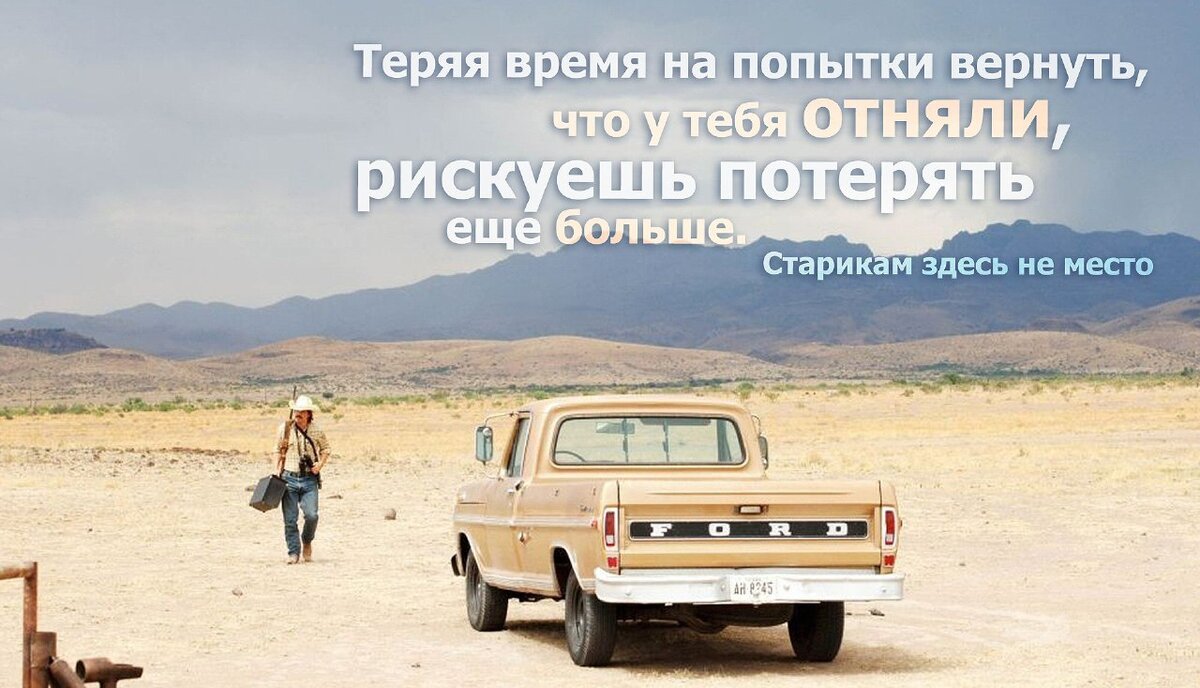 Теряя время на попытки вернуть, что у тебя отняли, рискуешь потерять еще больше. ____ Старикам здесь не место Наш телеграмм-канал: https://t.me/gnosismirrussia Емкие цитаты на каждый день.