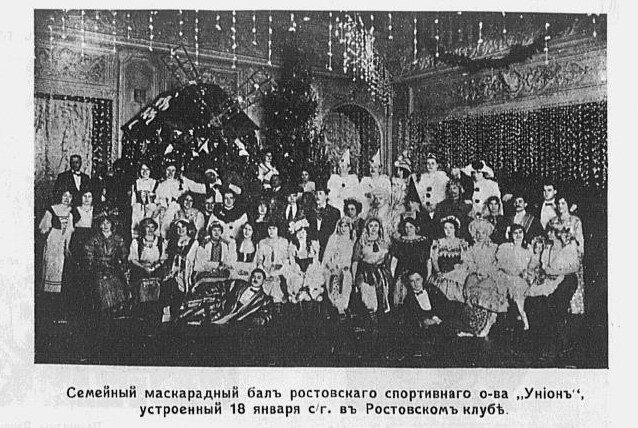 «Дирекция ростовского-на-Дону клуба доводит до всеобщего сведения, что завтра, 2-го января 1905 года в залах клуба назначен Костюмированный БАЛ-МАСКАРАД с премиями за лучшие костюмы. При входе на этот бал дамы и мужчины должны быть в характерных костюмах , как и в масках»