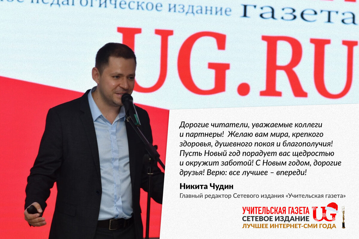 Дорогие читатели, уважаемые коллеги и партнеры! От имени команды сетевого издания «Учительская газета» поздравляю вас с наступающим Новым годом! Новый год – время чудес и волшебства, в которые верят все, независимо от возраста. Под бой курантов принято загадывать желания. Мечты у каждого свои. Они есть – и это прекрасно. Желаю, чтобы в следующем, 2023 году, сбылось все, о чем вы думаете, о чем мечтаете! А мы, команда сетевого издания «Учительская газета», поддержим вас в стремлении к счастью. Под занавес уходящего года принято подводить итоги. Нам есть о чем рассказать вам, уважаемые читатели и партнеры. На пороге 2022-го сетевое издание «Учительская газета» признали лучшим интернет-СМИ России. Нам удалось сохранить свои позиции. В конце уходящего года говорить об этом особенно приятно. В 2022-м мы полностью обновили дизайн сайта, сделав его максимально удобным для читателей. Вошли в топ-10 федеральных СМИ и заняли лидирующую позицию по версии Яндекс в трендах образовательных сайтов. В