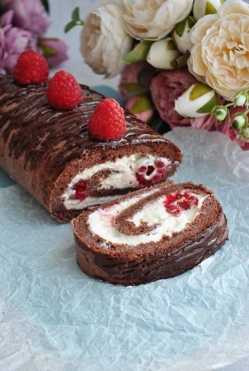 Простой и быстрый рецепт шоколадного рулета с малиной. По этому рецепту приготовит даже ребенок