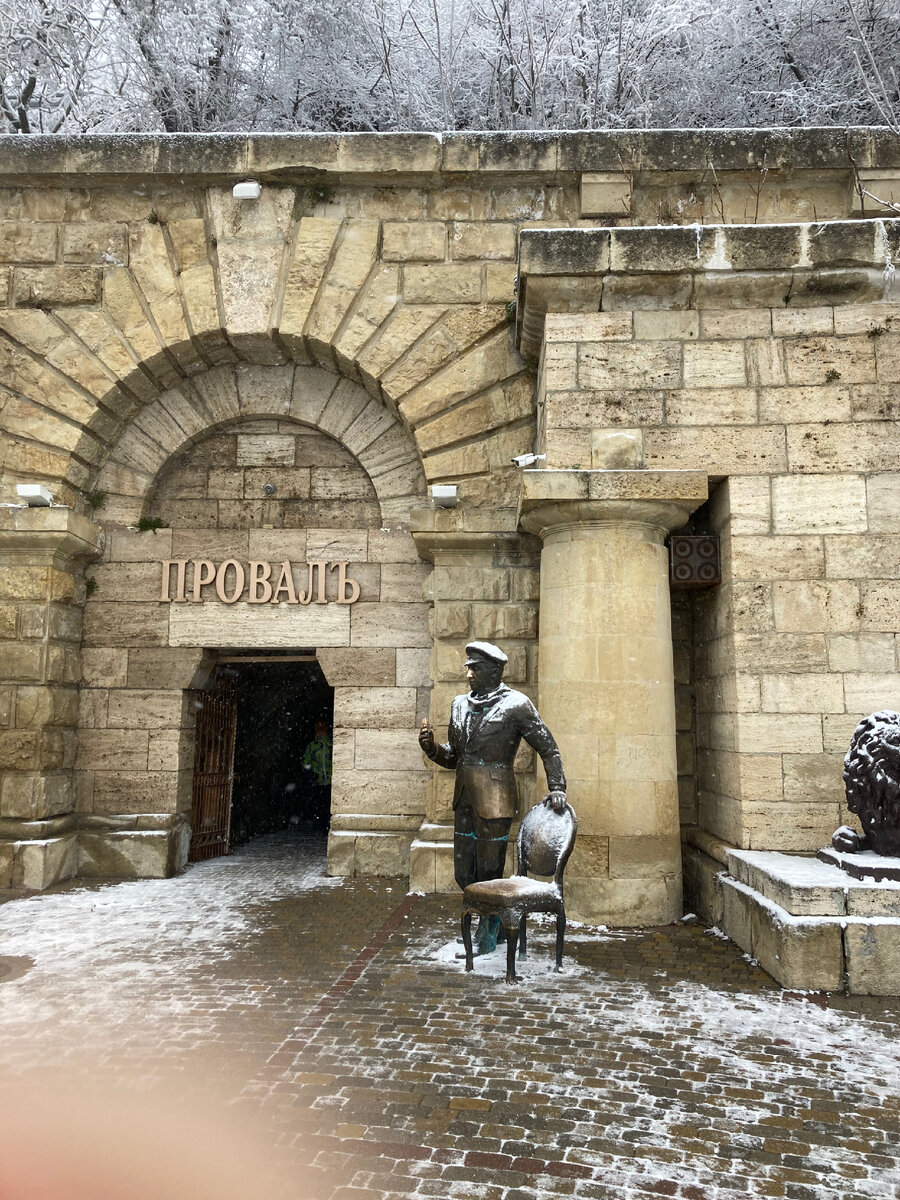 Провал и Арфу мы видели ранее на своей самостостоятельной пешей экскурсии, а вот памятники Княжне Мэри и Печорину вчера не нашли, зато сейчас вышли прямо к ним.