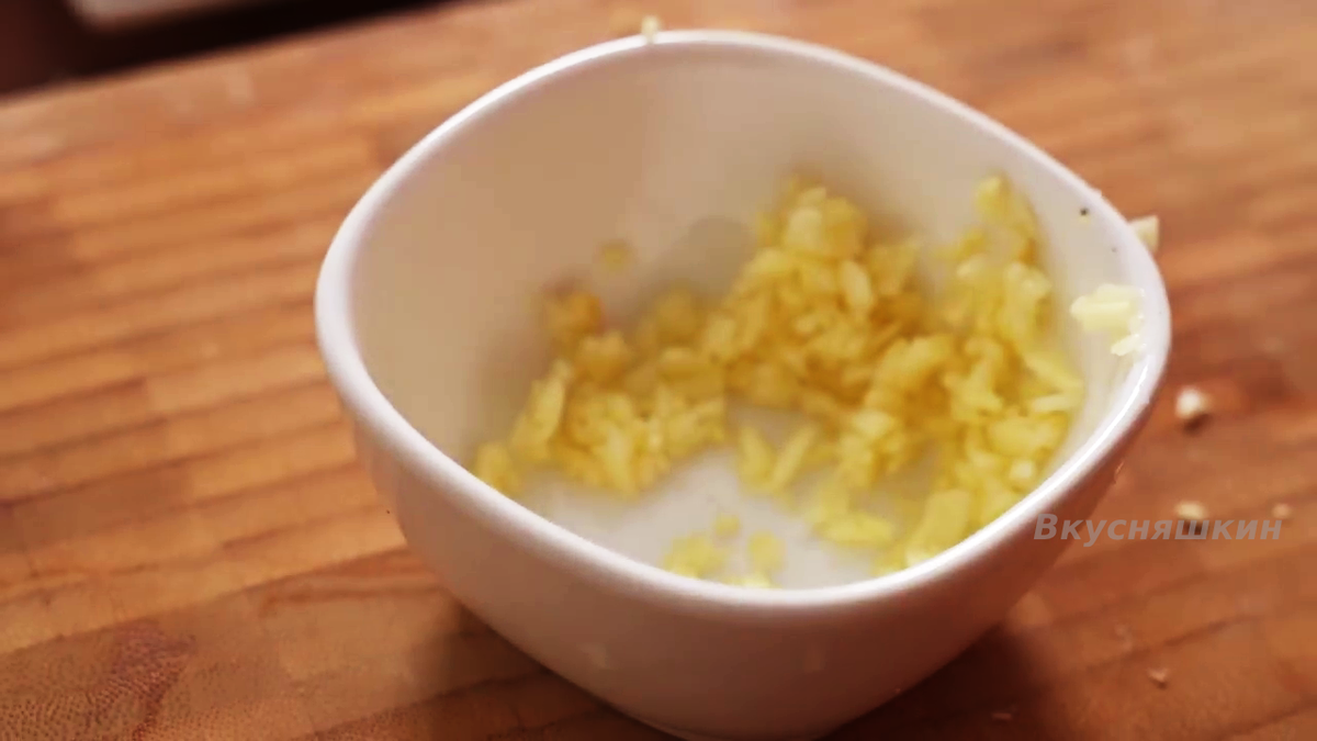 Мелко нарезаем 3 зубчика чеснока.