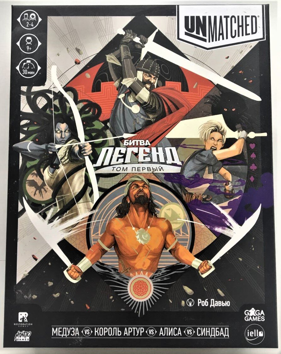 Unmatched это настольная игра - дуэль, для 2, 3 или 4 игроков. Игра стала набирать большую популярность, из за чего было выпущено много самостоятельных дополнений. Каждая версия игры содержит от 3 до 4 уникальных героев, которых без проблем можно совмещать с другими версиями игры, за счет чего разнообразия и вариативность игры будет увеличиваться. Можно играть сразу четверым игрокам, каждый сам за себя, или поделится на команды. Игра представляет из себя дуэль между популярными героями легенд, рассказов, комиксов. Каждый герой имеет свою колоду карт способностей, очки здоровья и вспомогательные оружия или помощника. Unmatched: Битва Легенд Я решил попробовать поиграть в эту игру, потому что очень часто и много слышал о ней положительных отзывов, и знаете, не пожалел. Игра отлично сделана, в неё интересно играть, нужно продумывать стратегию ходов в зависимости от карт в руке и местоположения противника.