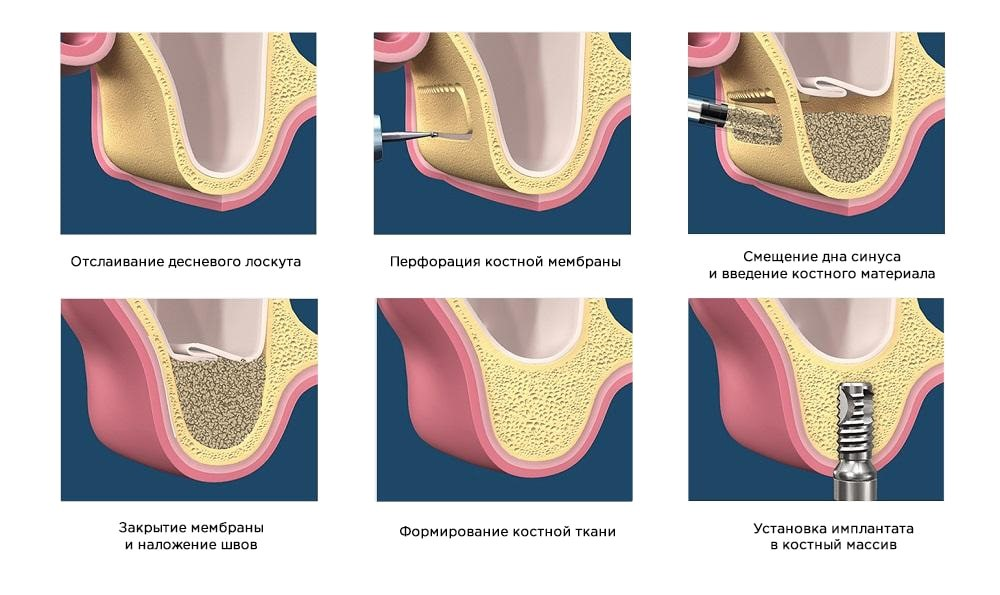 Синус-лифтинг - востребованная процедура костной пластики на верхней челюсти. Процедура проводится для более качественной установки имплантов, когда в боковых отделах верхней челюсти отсутствует необходимый объем кости. Это безопасная процедура, методика проведения которой отработана годами, и если ее проводит специалист, то она достаточно легко переносится пациентами и не влечет за собой никаких негативных последствий. Как проходит процедура? Во время операции доктор при помощи специальных инструментов немного приподнимает слизистую дна пазухи, а в пространство, образовавшееся под ней, вводит остеопластический материал, из которого сформируется недостающая костная ткань. В принципе, это и все. Эта операция не представляет опасности для органов дыхания, хоть объем гайморовых пазух и может уменьшиться, но это происходит в физиологических объемах и этого вполне достаточно для их полноценного функционирования. Если высота кости достаточна, а ее структура прочна и стабильна, то можно у