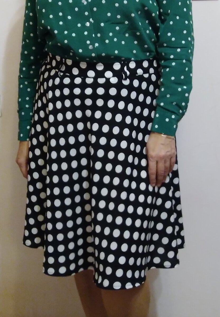 До Нового года осталось совсем мало времени и нужно успеть сделать обновку к празднику. Предлагаю сшить юбку "полусолнце". Пошив этой модели займет совсем мало времени и мерок. Для пошива юбки нужны всего 3 мерки: обхват талии (От), Полуобхват талии (Ст) и длина юбки (Ди), а также: ткань, бумага для выкройки, ножницы, булавки, мел, "молния" (я использовала потайную) в тон юбки, дублерин, крючки или пуговицы, нитки в тон ткани. Снимаем мерки и начинаем строить выкройку. Для этого находим радиус нашей юбки по формуле ОТ = От/3,14 ТД - длине изделия, среднюю часть можно уменьшить на 1 см как показано на схеме, так как в процессе длину придется корректировать. Так как наша юбка идет на угол, ткани на юбку нужно брать ОТ + длину юбки + 10 см Перед раскроем ткани желательно сделать декатировку для усадки ткани. Приступаем к раскрою юбки. Раскладываем выкройку на ткань и обязательно учитываем припуски: на пояс и боковые швы по 0,7 см, на подшив низа юбки 1-2 см (в зависимости от того как буд