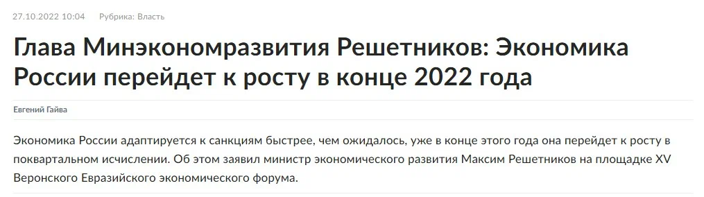 Ассоциация российских менеджеров провела опрос среди руководителей компаний на тему перспектив восстановления экономики: в какие сроки это может произойти, что этому будет способствовать, а что мешать. Для начала стоит напомнить, что глава Минэкономразвития не так давно заявлял, что российская экономика перейдет к росту уже в конце 2022 года, то есть, по идее, уже должна перейти. Что касается прогнозов ЦБ, которые представляют собой консенсус-прогноз около 30 отечественных и зарубежных аналитиков, рост российской экономики должен начаться в 2024 году. Но вот руководители компаний, которые на примере своих предприятий видят наиболее реальную картину в экономике, согласно результатам опроса, оказались куда более пессимистичны. 48% опрошенных ТОП-менеджеров (почти половина) считают, что восстановление российской экономики начнется только через 5 лет - в 2027 году. Третья часть дает оценку, схожую с оценками финансовых властей, но чуть пессимистичнее - с 2025 года. А каждый седьмой руковод
