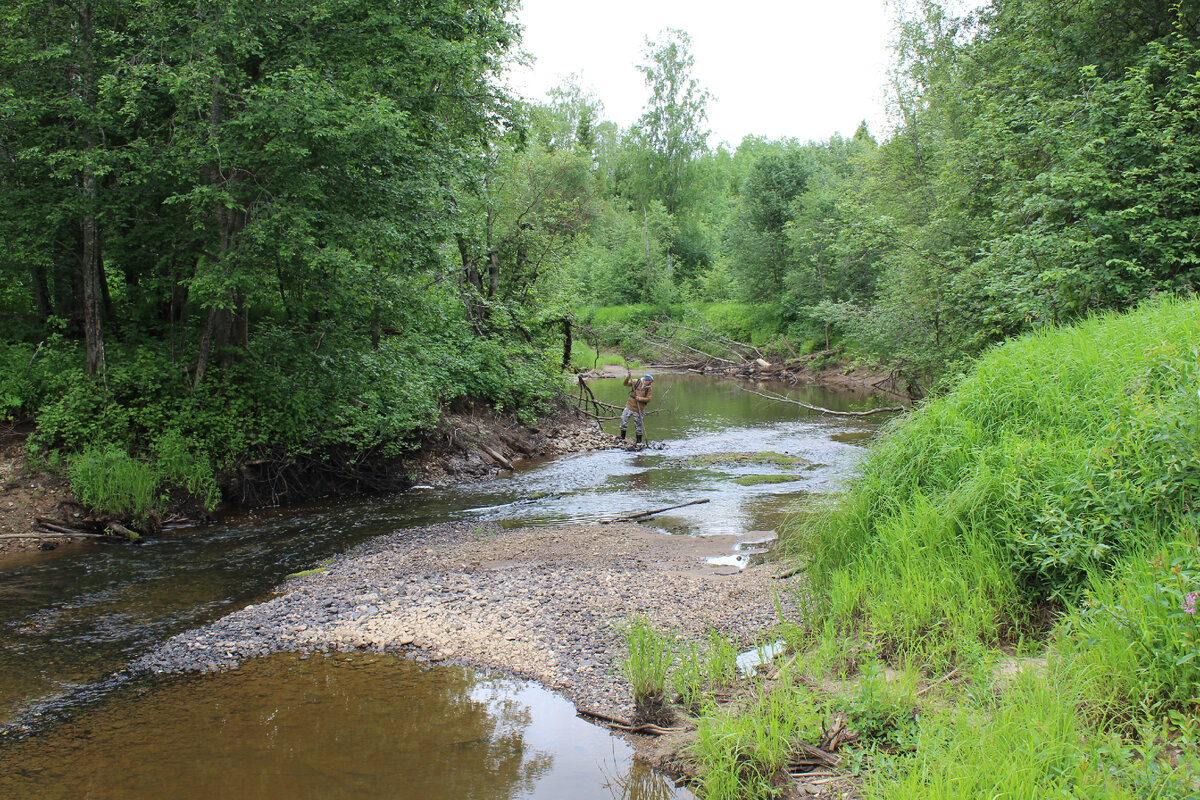 Задумка ночевать в палатке на берегу небольшой реки, протекающей вблизи родного села Верхораменье была осуществлена в июне 2020 года Оставив свой автомобиль около дома одноклассницы , я и мой сын, нагружённые туго набитыми рюкзаками , двинулись в путь по дороге , выложенной бетонными плитами . Дорога поднималась то вверх , то опускалась вниз ,мы проходили мимо разрушенных временем деревенек ,заросших борщевиком полей и огородов ..Печальная картина обезлюдившей деревни . Пройдя примерно четыре- пять километров мы остановились на привал . К радости путников заботливыми сельчанами был построен мини домик из оцилиндрованных бревен на высоком месте речного берега . Расположившись на лавках внутри домика мы пили чай с пирожками ,которые ,,на дорожку ,, положила в рюкзак одноклассница Валентина . Попытки н