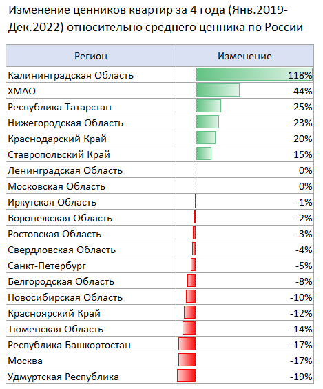 Посмотрите, как изменились ценники продавцов квартир за 4 года относительно среднего ценника по России: