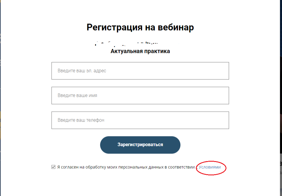 Начитавшись и наслушавшись историй о мошенниках, добывающих из баз банков и провайдеров персональные данные для выманивания денег у доверчивых граждан, любой мало-мальски разумный человек становится осторожнее. Поневоле начинаешь думать, прежде чем переходить куда-то по ссылке или заводить беседу с заботливым незнакомцем. Нравится мне, знаете ли, иной раз учиться чему-нибудь полезному или просто поддерживать мозг в тонусе, чтобы хватку не терять. Вот намедни наткнулась на довольно интересный для меня бесплатный вебинар. Очень захотелось послушать, тем более бесплатного и качественного в наши дни почти не сыскать. В общем, как обычно: заходим на лендинг, видим окно для регистрации на вебинар, ага. После заполнения предлагается автоматически поставить галочку о согласии на обработку моих персональных данных в соответствии с Условиями. Да кому интересны условия, давай уже жми скорее, регистрируйся. Так нет же, находятся на беду такие зануды, кому условия очень даже интересны, ну хотя бы