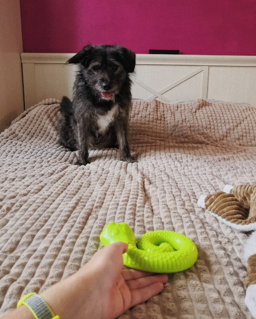 Особенно нравится давать ей змеюку с консервами после стрессовых вечерних прогулок. И нервы свои успокаивает, и ко сну грядущем готовится. Одно сплошное счастье! Если будете искать такую же, даю наводку: Trixie, игрушка для лакомств Змея. Стоит в районе 950-1000 рублей.