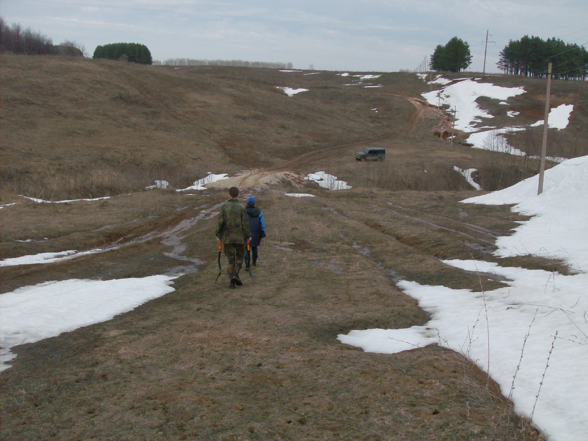 Начало тут. Участок леса, где разбили лагерь, находился в довольно удачном месте. Рядом сёл и деревень не было. Имелось топливо - сушняк, что немаловажно. На аварийный случай - газ. Одним словом - решили, пока, остаться тут и совершать вылазки и выезды по близлежащим окрестностям. В поисках кладов, золота Колчака, партии, Чингиз-хана и Монтесумы. Библиотеки Ивана IV и, конечно же, янтарной комнаты. Куда же без неё. Потуги подкованной в историческом плане единственной вумен, мол, - А ни чё, что мы сильно восточнее? - игнорились. У сильного пола присутствовал азарт! Да. Есть такая приблуда, затмевающая разум, логику и чувство самосохранения. - Слушай, Грозный Казань брал? - Ну, брал... - А она тут недалеко! Значит царь мог заныкать свои фолианты где то рядом. Чего таскать с собой кучу макулатуры? Железный аргумент, согласитесь. Конец апреля не очень подходящее время для жизни на природе. Холодно! По ночам особенно. Но, днём, если выглядывало солнце - спокойно можно бродить в футболке