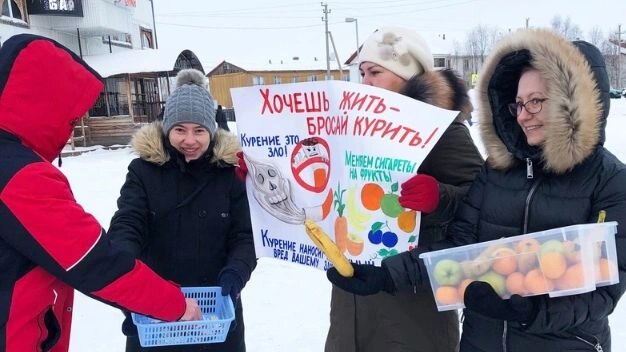 В поддержку недели пропаганды потребления фруктов и овощей, которая проходит в России с 19 по 25 декабря, сотрудники отделения медпрофилактики для взрослых Губкинской горбольницы организовали необычную акцию. Медики предлагали горожанам на улицах обменять сигареты на фрукты. Миссия акции — пропаганда ЗОЖ и отказа от табачных изделий. Кроме того, участники мероприятия продемонстрировали губкинцам, что любой спелый фрукт вкуснее и полезнее сигареты. Об этом сообщила пресс-служба горбольницы. Акция пришлась по душе горожанам. Фрукты брали охотно, с сигаретами расставались легко. Все собранные табачные изделия по окончании акции были уничтожены. Ранее психиатр-нарколог напомнил молодежи Муравленко о вреде курения. Самые важные и оперативные новости — в нашем телеграм-канале «Ямал-Медиа».