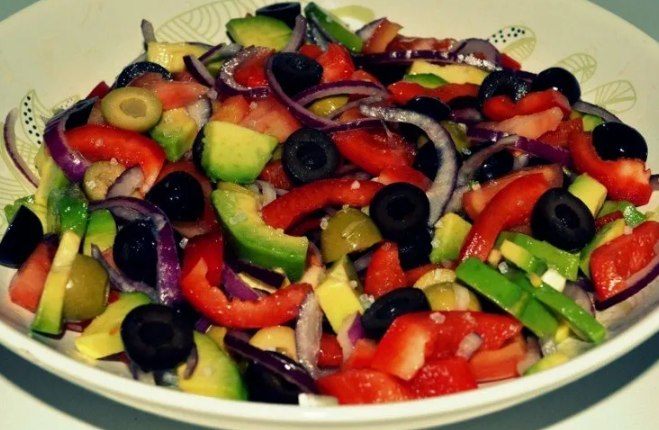 Приветствую Вас, дорогие подписчики и читатели! Этот салат очень легкий в приготовлении, но при этом очень полезный, способный зарядить организм энергией и витаминами, которых особенно не хватает в зимнее время года. Этот салат можно приготовить за 15-20 минут. Огромный плюс, что ничего не нужно заранее отваривать, просто нарезать необходимые ингредиенты, и салат готов. Нам понадобится: Процесс приготовления; Авокадо очищаем от кожицы и нарезаем кусочками среднего размера. Помидорки нарезаем небольшими кусочками или кубиком. Фиолетовый лук - тонкими полукольцами. Болгарский перец необходимо нарезать соломкой. Оливки и маслины нарезаем на две-три части, небольшими колечками. Можно добавить свежий огурец. Все ингредиенты соединяем в салатнике и немного сбрызгиваем лимонным соком. В конце заправляем салат оливковым маслом и хорошенько перемешиваем. Получается яркий, красивый, летний, легкий и нежный салат. Приятного аппетита!