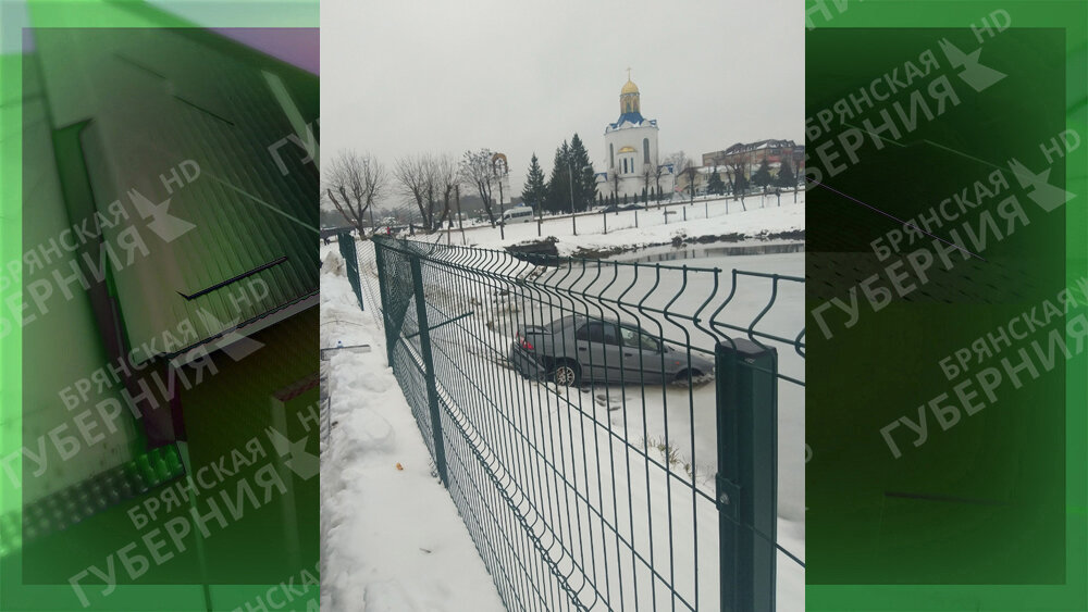 В Дятьково легковой автомобиль съехал в пруд. Все произошло в субботу, 24 декабря, на стоянке у ТРЦ «Кристалл».