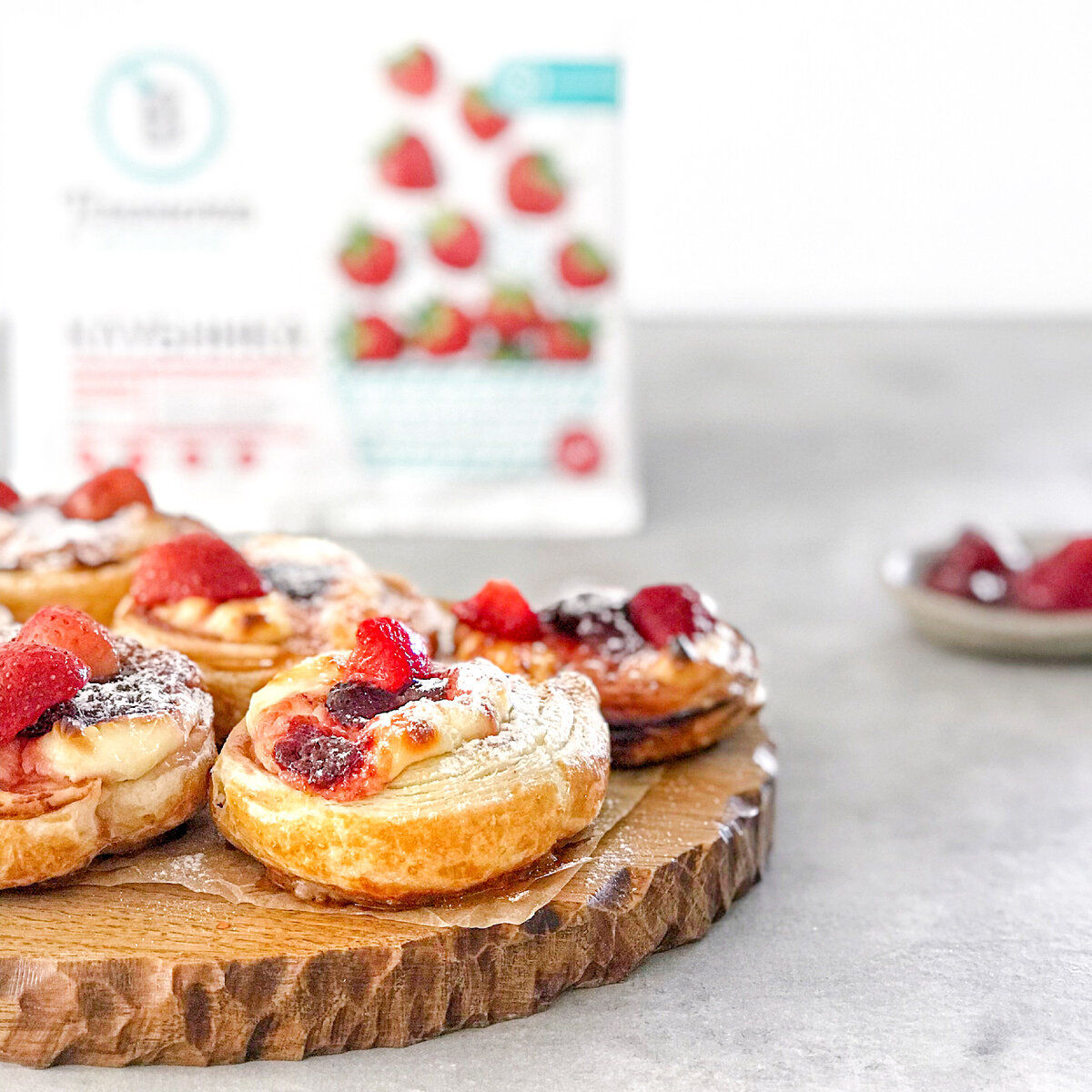 Дениш (булочки) с клубникой 🍓 из слоеного теста. Время на приготовление всего 20 мин + 30 минут на выпекание👌. ⠀