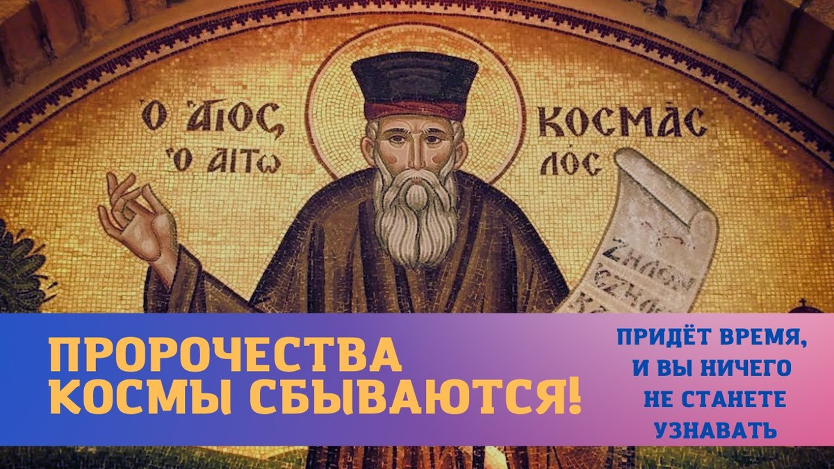 на юге и другие на севере. Все эти факты подтверждают современные историки и богословы. В своих пророчествах святой Косма предсказал процессы, которые особенно распространены в наше время - массовую иммиграцию и миграцию. Например, миллион иммигрантов из Азии, Африки и Восточной Европы хлынули в Европейский Союз. Аналогичная ситуация складывается сейчас и в России, где сотни тысяч так называемых гастарбайтеров ежегодно переезжают в Россию в поисках работы. Даже святой предсказал: Грязные народы придут, когда придут. Не бойтесь, когда они уходят, но отойдите в сторону. Придет время, и там, где мальчики сейчас вешают свое оружие, цыгане будут вешать свои музыкальные инструменты. Мы живем в то время, о котором говорил святой Космо из Италии. Там, где когда-то поклонялись монахи и где когда-то было радостно читать четки, теперь стоят радиоприемники и шипучие закуски. Кажется, что пройдет еще несколько лет, и все это будет уже не нужно. Святой Космо также говорит, что это произойдет внезапно. Оставьте мешок с пшеницей висеть на двери, вы найдете его, когда будете уходить.