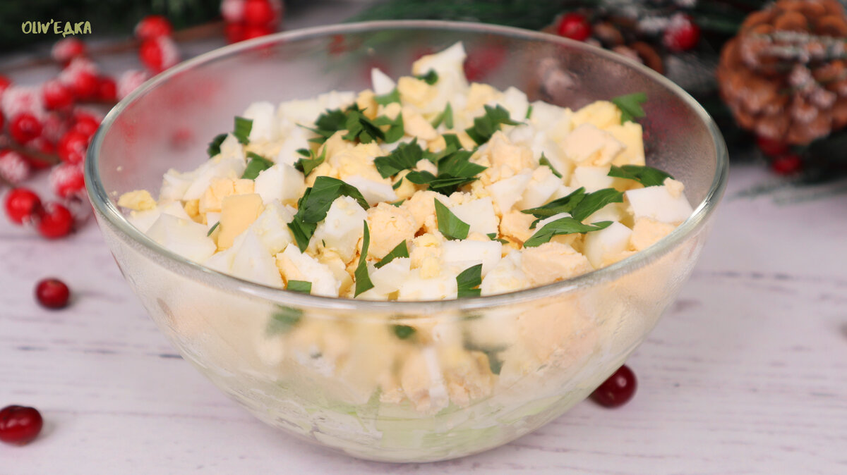 Этот салатик один из самых простых на скорую руку, я частенько готовлю его просто к ужину, но и на праздничный стол, если красиво украсить отличной подойдет. Я готовила его в составе бюджетного новогоднего меню. Готовим 👨🏻🍳 Подробный видео рецепт и ингредиенты можно посмотреть в конце статьи⤵️ Для этого салат я использовала домашние маринованные грибочки, у меня маслята, вы можете использовать абсолютно любые и даже купить просто маринованные шампиньоны. Так как маслята достаточно слизкие грибочки и кисленькие в моем случае, я сначала их промываю и даю стечь всей лишней воде, затем режу на небольшие кусочки. Этот салат можно собирать слоями ил просто смешать в салатнике. Я выложила слоями, но салат получается достаточно рыхлым, поэтому в кольце его собрать не получится. Далее я очистила один свежий огурец и нарезала кубиками. Его можно на некоторое время оставить на сите, чтобы стек лишний сок, и вообще этот салат лучше готовить не заранее, а перед употреблением в этот же день, т